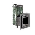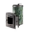 Печь Атмосфера XL с увеличенной каменкой и повышенной производительностью. Ламели из змеевика по периметру внешней каменки не только обладают хорошими теплонакопительными свойствами, но и придают печи оригинальный внешний вид.